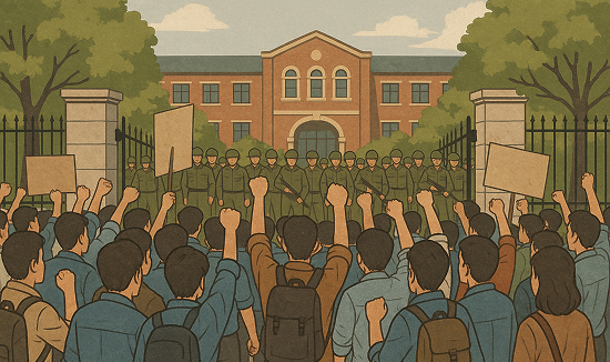 7시경, 대학에는 휴교령이 내려졌다. 10시경 정문