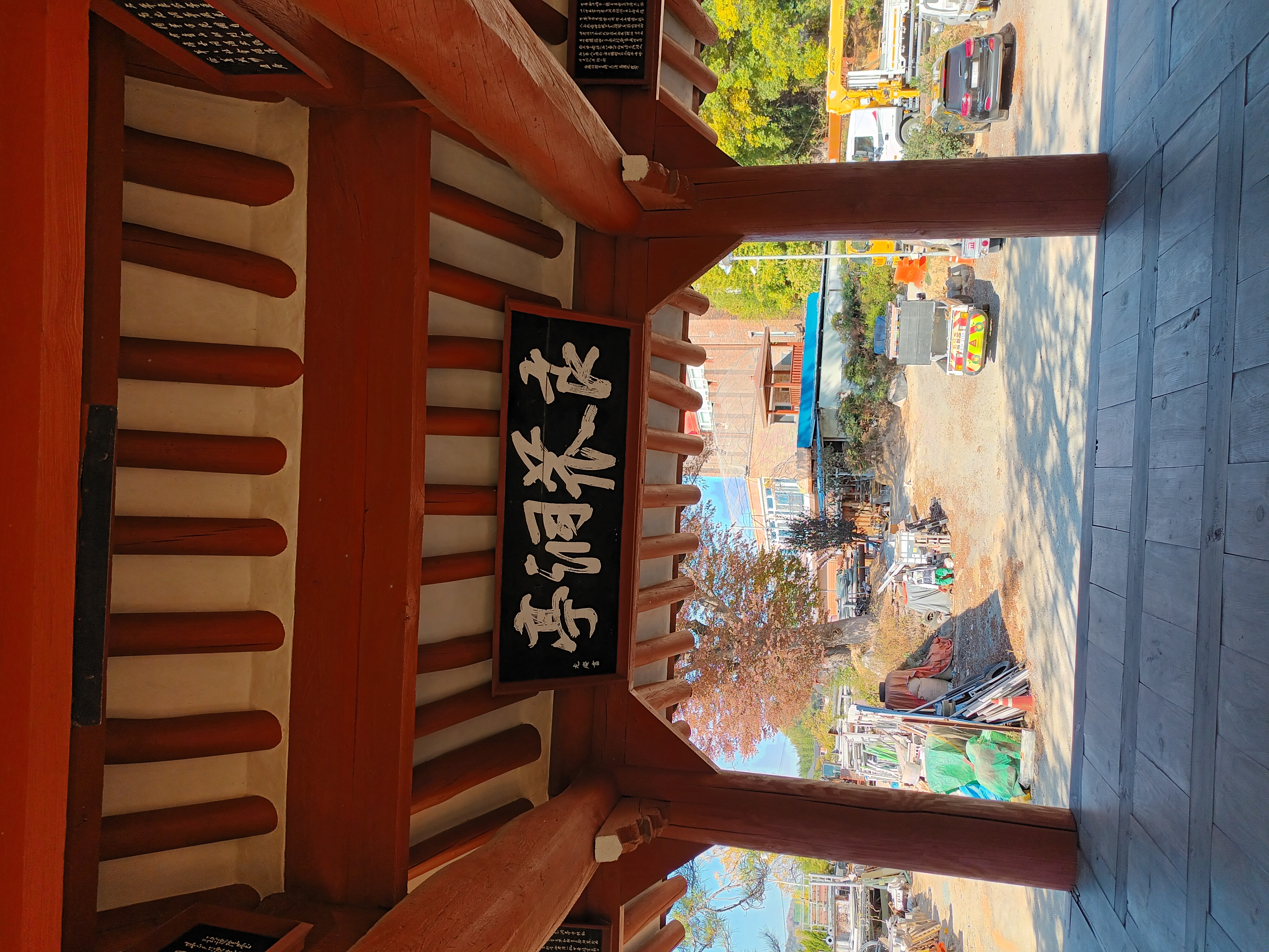 - 정면 3칸, 측면 2칸의 맞배 지붕 건물이며 사방 벽은 개방되어 있다.